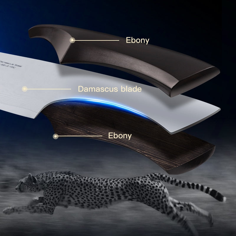 KD Cheetah Series Kitchen Chef Knives Damascus Steel Nakiri Knife